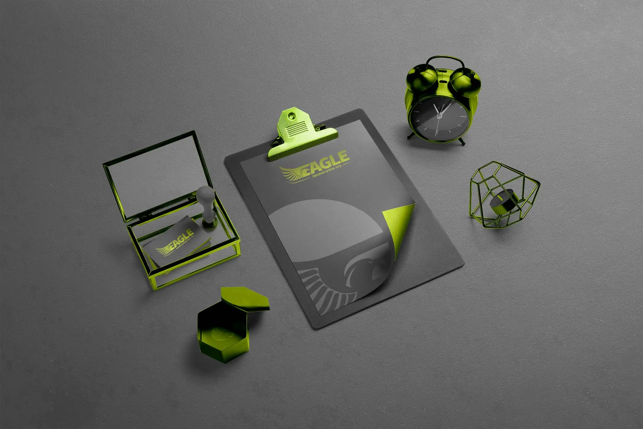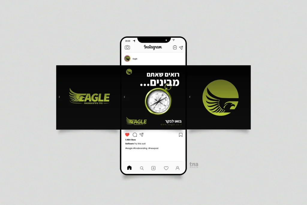– עיצוב לוגו – נשר כסמל לעוצמה, חופש וראייה למרחקים. פלטת צבעים טבעית עם דגש על ירוק וחום.